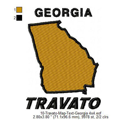 Travato Georgia State Map Designs Machine Embroidery Digitized Design Files