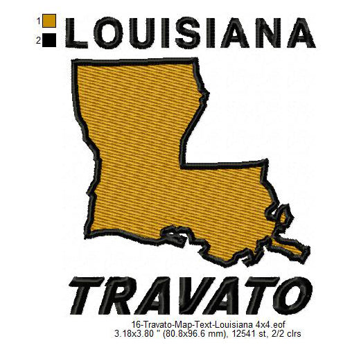 Travato Louisiana State Map Designs Machine Embroidery Digitized Design Files