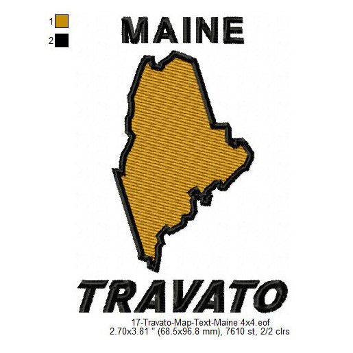 Travato Maine State Map Designs Machine Embroidery Digitized Design Files
