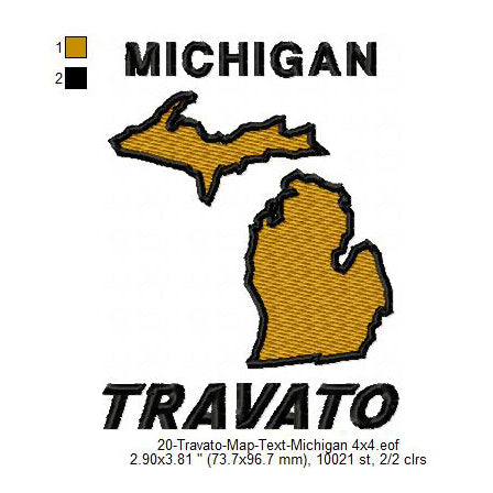 Travato Michigan State Map Designs Machine Embroidery Digitized Design Files