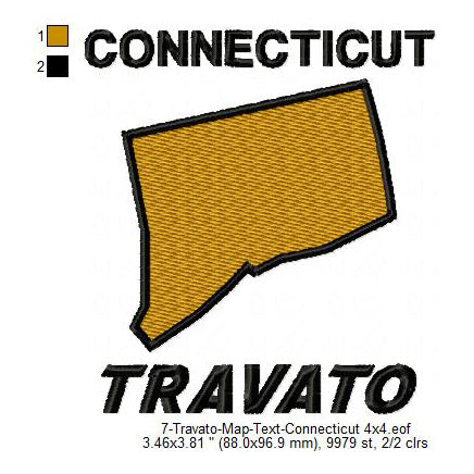 Travato Connecticut State Map Designs Machine Embroidery Digitized Design Files