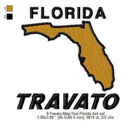 Travato Florida State Map Designs Machine Embroidery Digitized Design Files