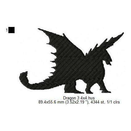 Dragon Shadow Silhouette Machine Embroidery Digitized Design Files