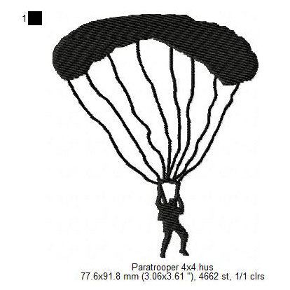 Paratrooper Shadow Silhouette Machine Embroidery Digitized Design Files