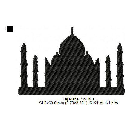 Taj Mahal Shadow Silhouette Machine Embroidery Digitized Design Files