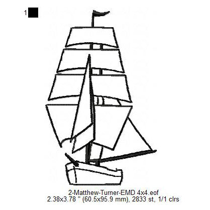 Matthew Turner Seaward Ship Silhouette Machine Embroidery Digitized Design Files