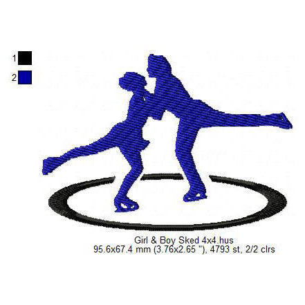 Ice Skating Couple Man Woman Silhouette Machine Embroidery Digitized Design Files