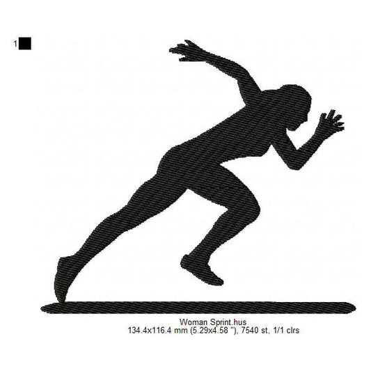 Women Sprint Athletics Silhouette Machine Embroidery Digitized Design Files