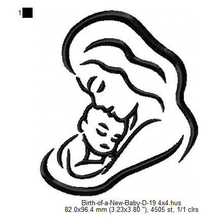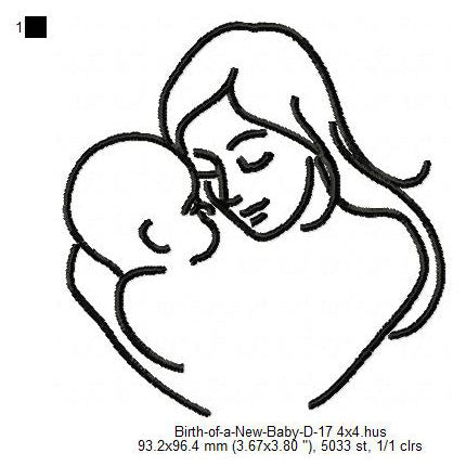 Mother Care For New Born Baby Toddler Line Art Machine Embroidery Digitized Design Files