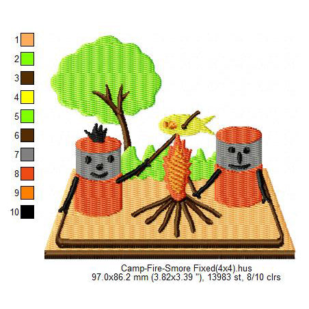 Camp Fire Smore Marshmallow Cartoon Machine Embroidery Digitized Design Files