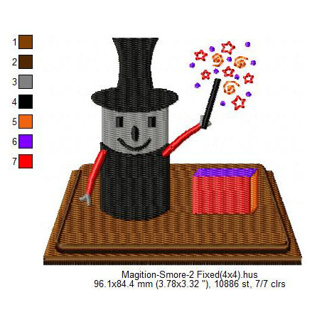 Magician Smore Marshmallow Cartoon Machine Embroidery Digitized Design Files
