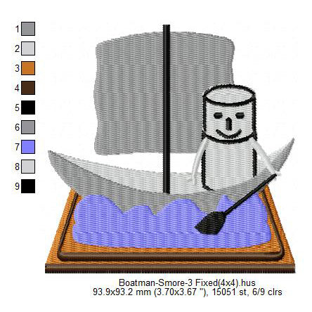 Boatman Smore Marshmallow Cartoon Machine Embroidery Digitized Design Files