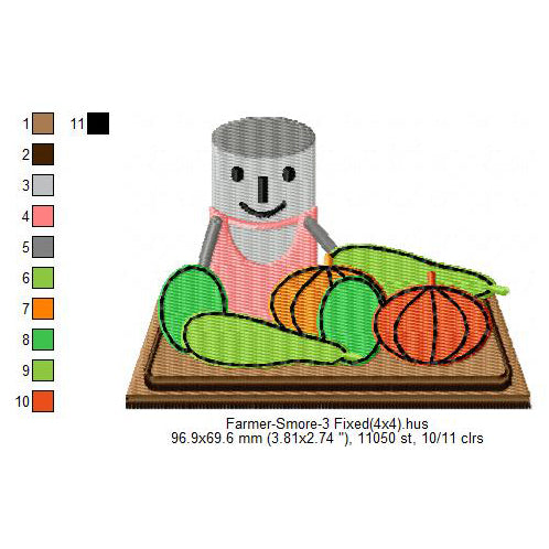 Farmer Smore Marshmallow Cartoon Machine Embroidery Digitized Design Files