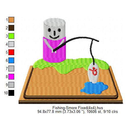 Fishing Smore Marshmallow Cartoon Machine Embroidery Digitized Design Files