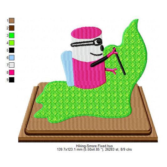 Hiking Smore Marshmallow Cartoon Machine Embroidery Digitized Design Files