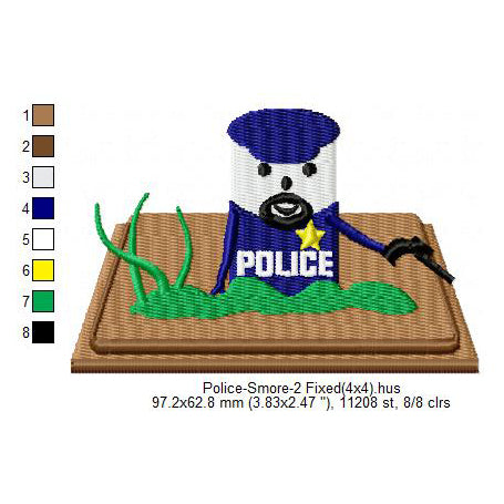 Police Smore Marshmallow Cartoon Machine Embroidery Digitized Design Files