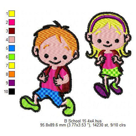 Back To School Kids Going To School Machine Embroidery Digitized Design Files