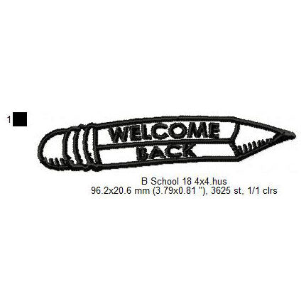 Welcome Back To School Pencil Line Art Machine Embroidery Digitized Design Files