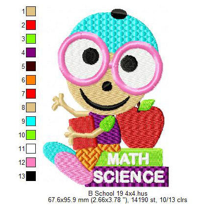 Back To School Cartoon Sits On Math Science Book Machine Embroidery Digitized Design Files