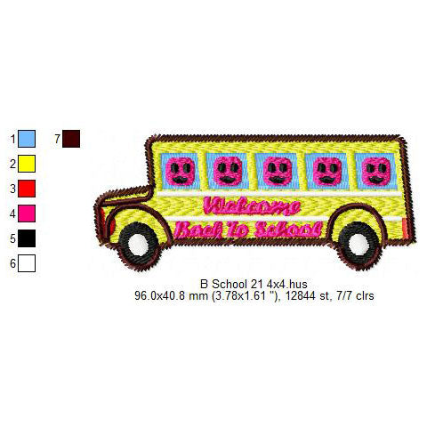 Welcome Back To School Bus Machine Embroidery Digitized Design Files