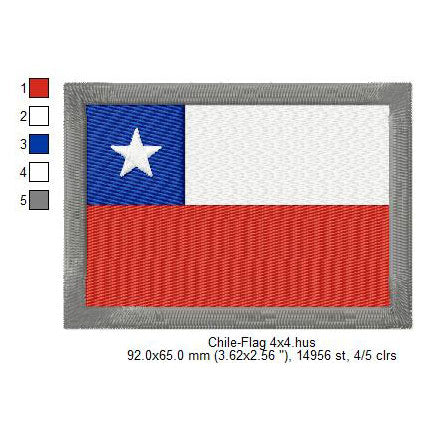 Chile Flag Chileans Machine Embroidery Digitized Design Files | Dst | Pes | Hus | VP3