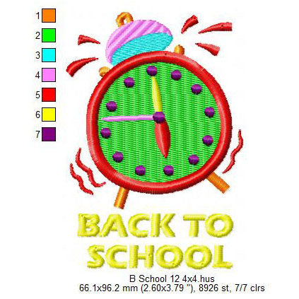 Back To School Alarm Clock Machine Embroidery Digitized Design FilesRegular price $3.00 USDRegular priceUnit price per$4.00 USDSale price $3.00 USDSale