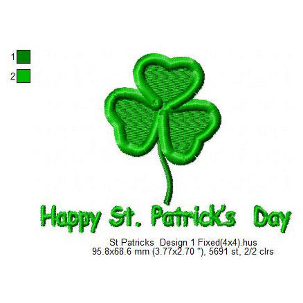 Happy Saint Patrick's Day Shamrock Four Leaf Clover Machine Embroidery Digitized Design FilesRegular price $3.00 USDRegular priceUnit price per$4.00 USDSale price $3.00 USDSale