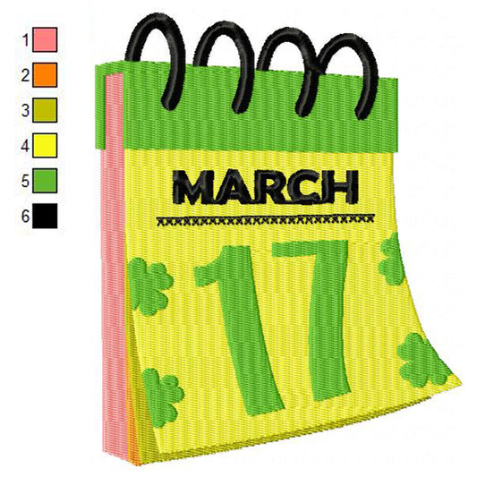 Happy Saint Patrick's Day Calendar March Machine Embroidery Digitized Design FilesRegular price $3.00 USDRegular priceUnit price per$4.00 USDSale price $3.00 USDSale