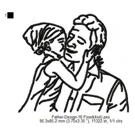 Father With Kid Child Father's Day Line Art Machine Embroidery Digitized Design Files
