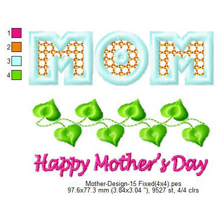 Happy Mommy Day Mother's Day Machine Embroidery Digitized Design Files