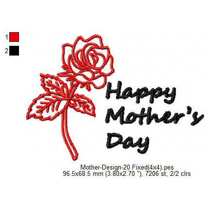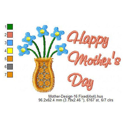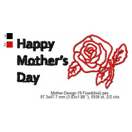 Happy Mother's Day Flower Machine Embroidery Digitized Design Files