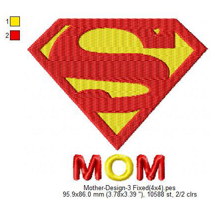 Super Mom Mother Mother's Day Machine Embroidery Digitized Design Files