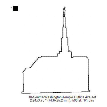 Seattle Washington LDS Temple Outline Machine Embroidery Digitized Design Files