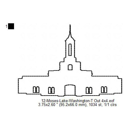 Moses Lake Washington LDS Temple Outline Machine Embroidery Digitized Design Files