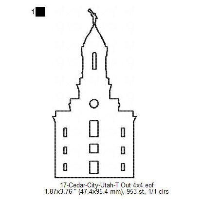 Cedar City Utah LDS Temple Outline Machine Embroidery Digitized Design Files