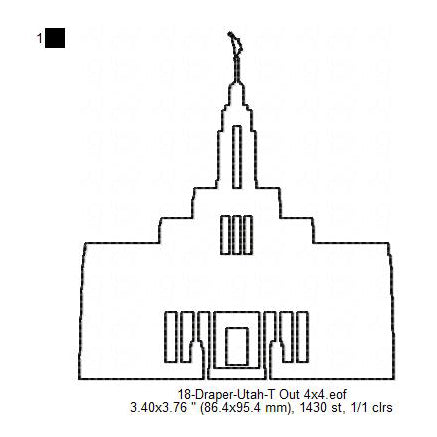 Draper Utah LDS Temple Outline Machine Embroidery Digitized Design Files