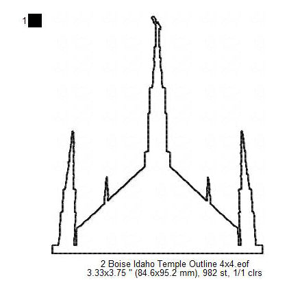 Boise Idaho LDS Temple Outline Machine Embroidery Digitized Design Files