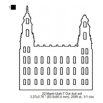 Manti Utah LDS Temple Outline Machine Embroidery Digitized Design Files