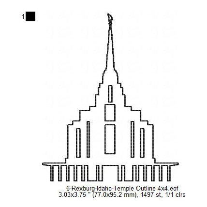 Rexburg Idaho LDS Temple Outline Machine Embroidery Digitized Design Files