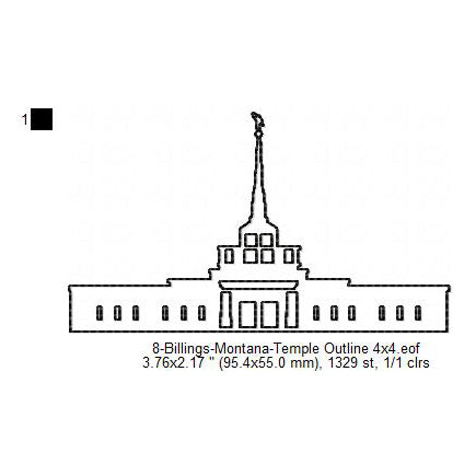 Billings Montana LDS Temple Outline Machine Embroidery Digitized Design Files