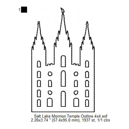 Salt Lake City LDS Temple Outline Machine Embroidery Digitized Design Files