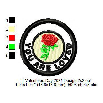 You Are Loved Valentines Day Merit Badge Machine Embroidery Digitized Design Files