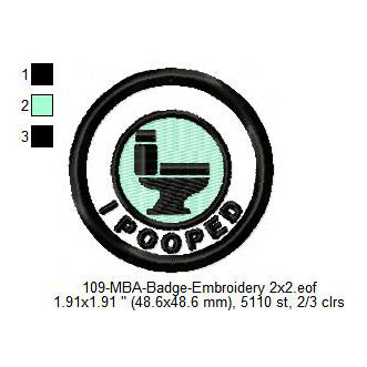 I Pooped Lifestyle Daily Life Merit Adulting Badge Machine Embroidery Digitized Design Files
