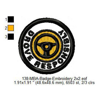 Drove Responsibly Merit Adulting Badge Machine Embroidery Digitized Design Files