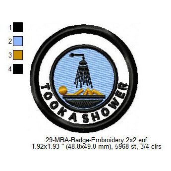 Took A Shower Merit Adulting Badge Machine Embroidery Digitized Design Files