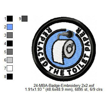 Replaced The Toilet Paper Merit Adulting Badge Machine Embroidery Digitized Design Files