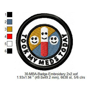 Took My Meds Today Merit Adulting Badge Machine Embroidery Digitized Design Files