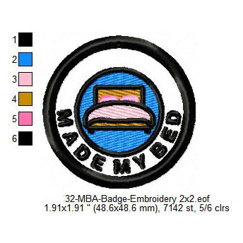 Made My Bed Merit Adulting Badge Machine Embroidery Digitized Design Files
