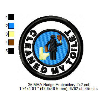 Cleaned My Toilet Merit Adulting Badge Machine Embroidery Digitized Design Files