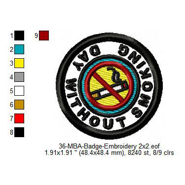 Day Without Smoking Merit Adulting Badge Machine Embroidery Digitized Design Files